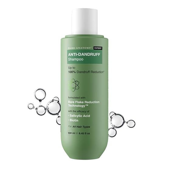 Bare Anatomy Anti Dandruff Shampoo | Reduces Up to 100% Dandruff and Strengthens Hair | Derma Approved Shampoo with Salicylic Acid & Biotin | Helps Remove Flakes and Itching | Shampoo For All Hair types | For Women And Men | 100ml
